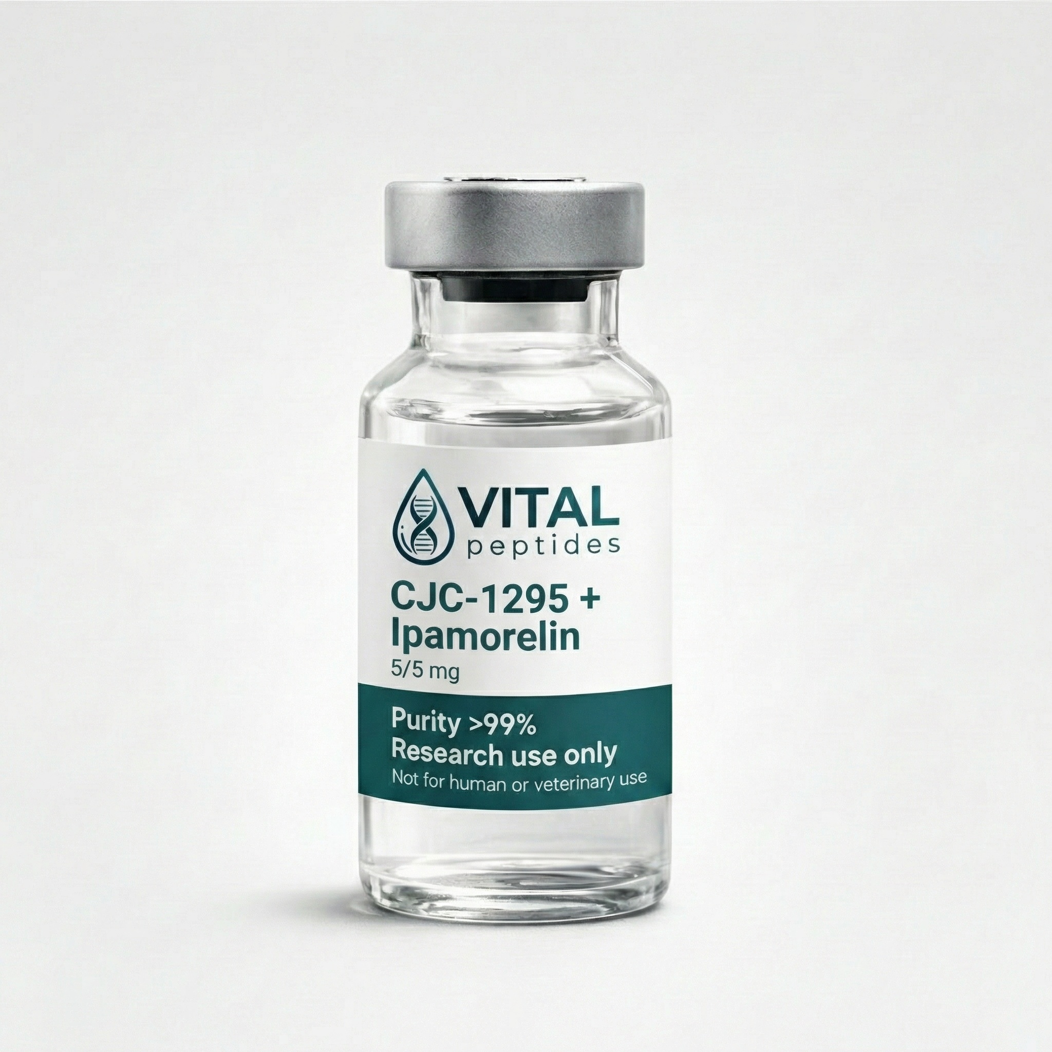 Blend CJC-1295 5mg + Ipamorelin 5mg is a potent research peptide combination widely studied for its synergistic effects on growth hormone secretion, recovery, and metabolic health. This blend combines CJC-1295, a growth hormone-releasing hormone (GHRH) analog, with Ipamorelin, a selective GH secretagogue, to enhance research into GH regulation and its physiological impact.