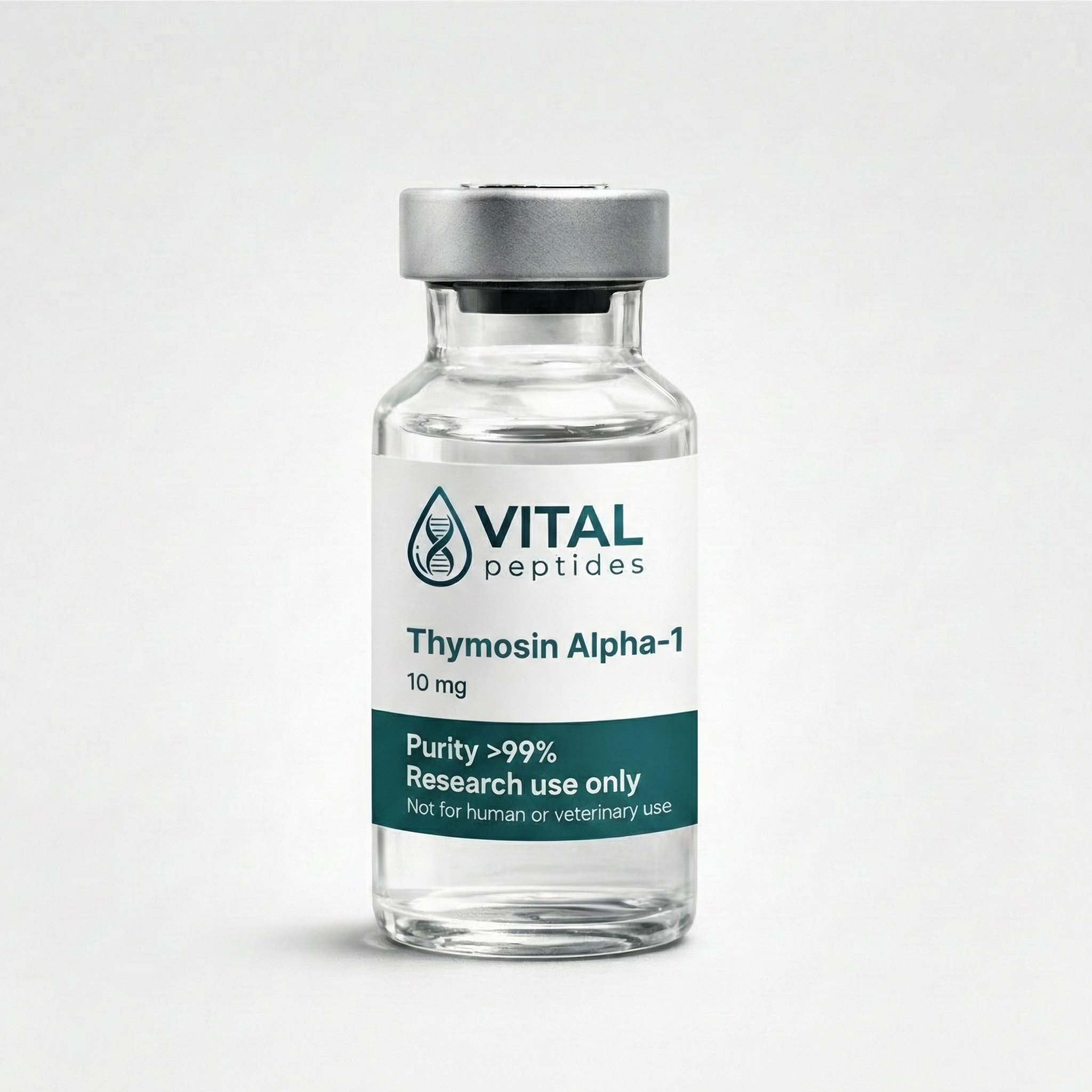 Thymosin Alpha-1 10mg is a synthetic version of a naturally occurring peptide fragment derived from prothymosin alpha. Widely studied for its immunomodulatory effects, it is frequently utilized in research focused on immune enhancement, antiviral mechanisms, and cancer-related pathways. Our Thymosin Alpha-1 is formulated using ultra-pure materials and precision manufacturing to ensure exceptional consistency and efficacy for laboratory research.